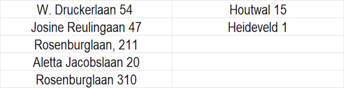 LATER opgegeven adressen worden nog toegevoegd